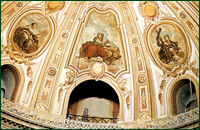 Innenkuppel im Zustand von 1942 mit den Bildern der Misericordia (von links), des Evangelisten Johannes und der Fides -